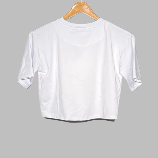 HOLYFIELD White & Pink Graphic Print Cropped T-Shirt #148