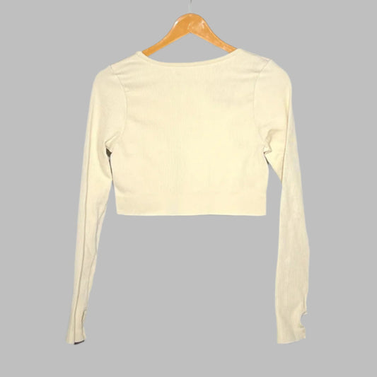 Cream Long Sleeve Cropped Top – Elegant & Minimalist #144