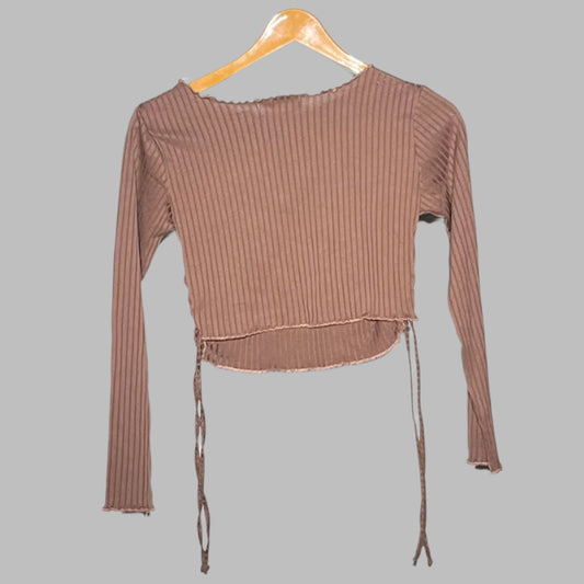 PrettyLittleThing Brown Ribbed Ruched Cropped Top – Trendy & Chic #146