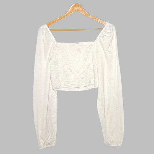 Divided White Ruched Long-Sleeve Cropped Top #153