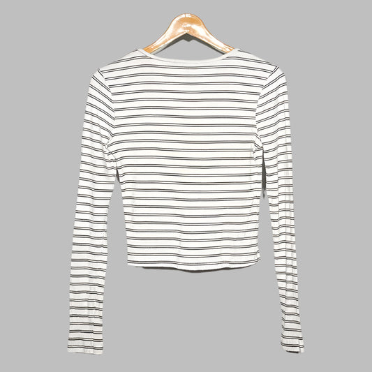 Primark Striped Button-Up Long Sleeve Cropped Top – Casual & Trendy #142
