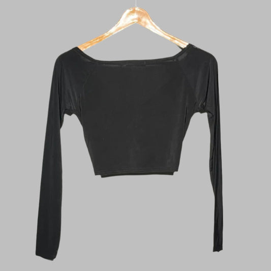 Primark Black Sheer Mesh Long-Sleeve Cropped Top #152