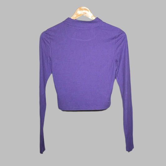 Simon Purple Ribbed Mock-Neck Cropped Top #150