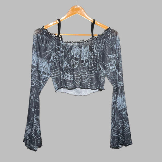 Pomve Gothic Mesh Print Crop Top – Black & Grey #157