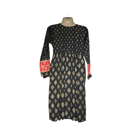 Ethnic Black & Gold Printed Maxi Dress #137
